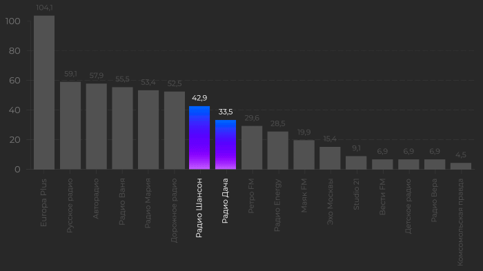 Мы объединили «Радио Шансон» и «Радио Дача» в единый рекламный продукт Gold 35+ и получили лидера радиорынка среди слушателей в возрасте 35+ с ежедневной аудиторией 76 400 человек